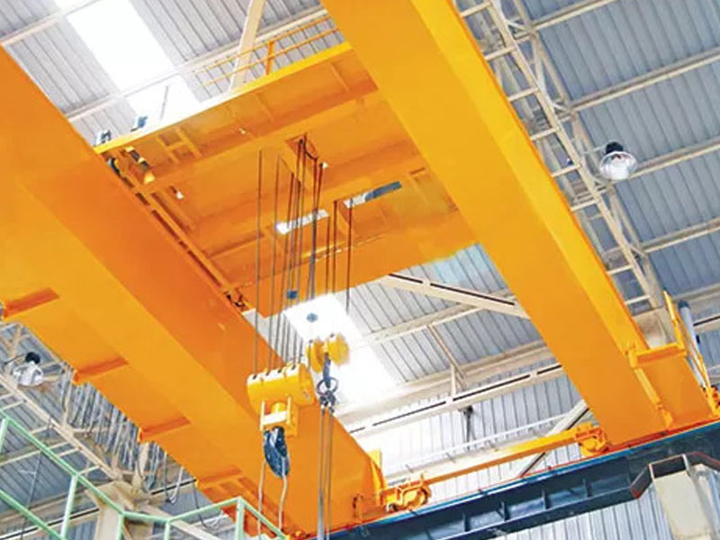 Double Girder EOT Crane have 2 Main Girders across the span. It consist of Electric Hoist travelling on lower flange of Main Girder and not required rail for cross traveling. It consist of a crab mechanism travels above both girders run over cross travel rails with platform to maintain all parts of crab.